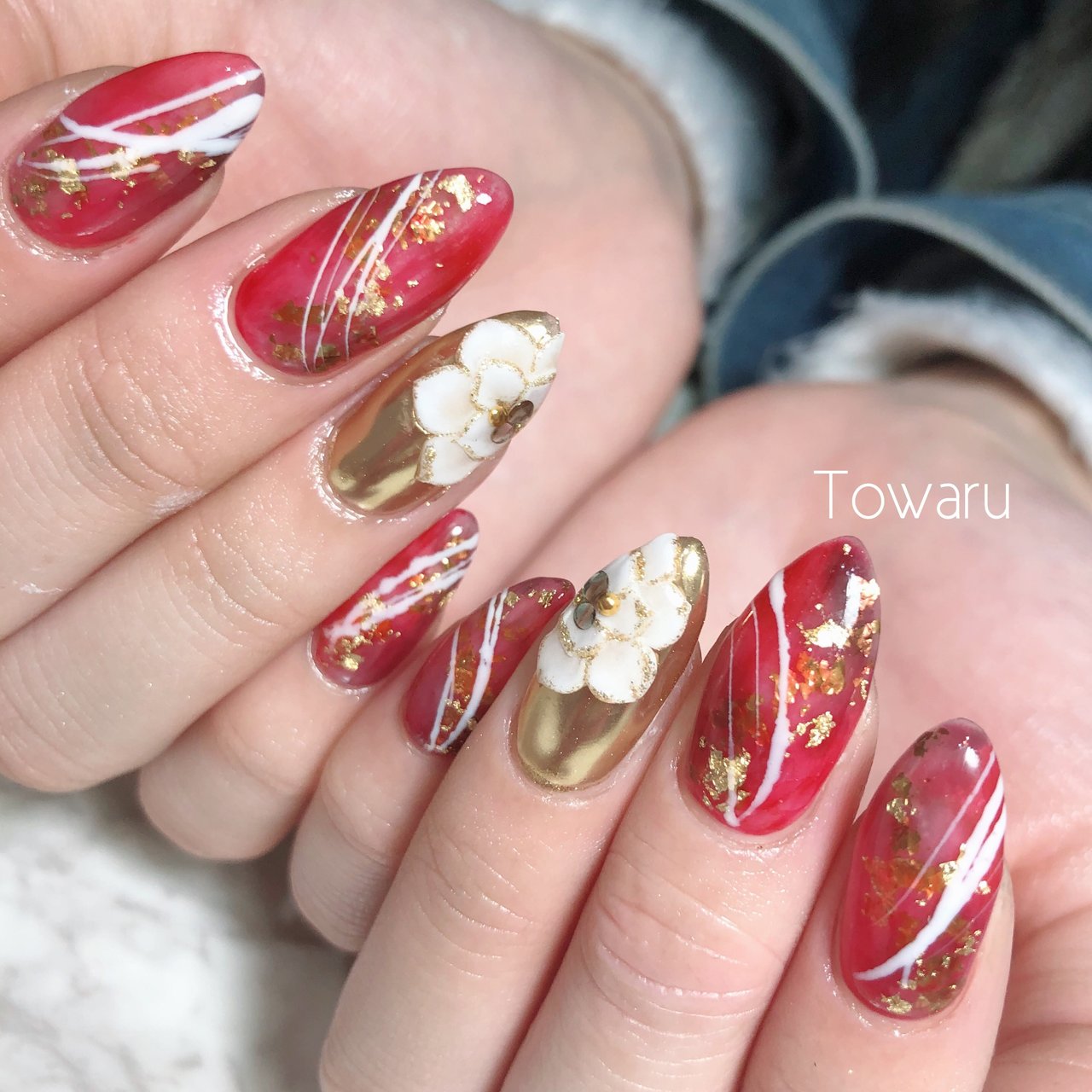お正月 成人式 卒業式 ハンド 3d Nailsalon Towaruのネイルデザイン No ネイルブック